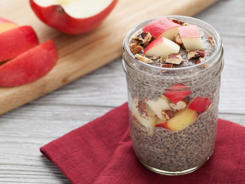 Switch up your morning oatmeal routine with this so-easy chia pudding recipe. It's made just like overnight oats: combine chia and your milk of choice, let soak overnight, then top with the classic flavor combo of apples and cinnamon, with pecans for added crunch.