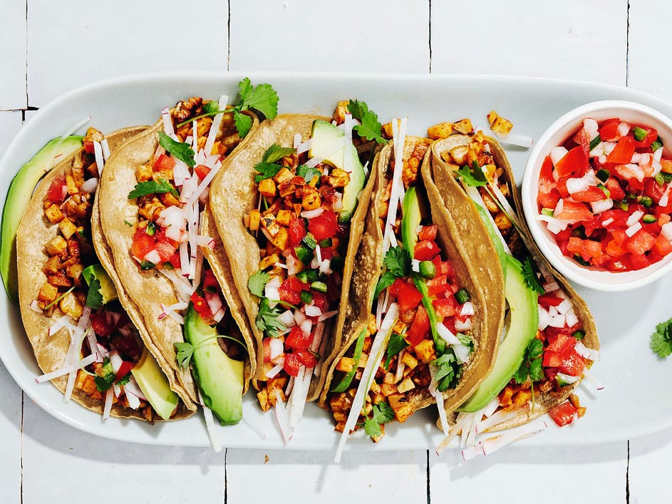 - Serve the celeriac mixture in tortillas topped with the jicama (and/or radishes), avocado, salsa (or pico de gallo) and cilantro.