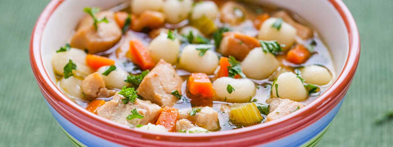Classic comfort food made kidney-friendly. This hearty, yet quick and easy chicken soup uses fresh gnocchi as the dumplings.