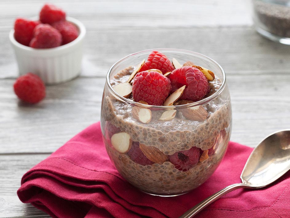 Have chocolate for breakfast with this unbelievably healthy chia pudding recipe. The deep chocolaty flavor pairs perfectly with juicy raspberries for a fun switch-up from oatmeal for your morning routine.