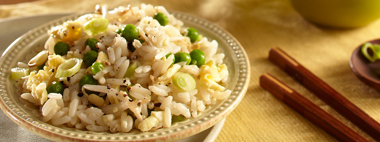 A delicious, easy-to-make Asian-inspired dish for those who are always on the go. This egg fried rice recipe combines scrambled eggs, rice, green onions, peas and bean sprouts for a filling and satisfying meal that’s perfect for vegetarians.