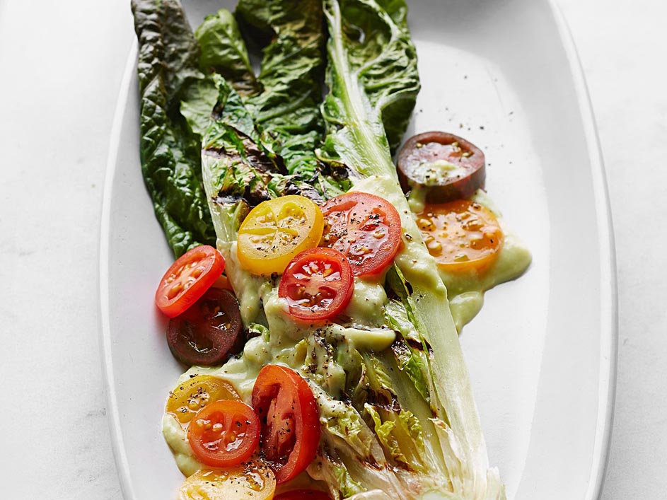 Romaine lettuce takes on a nice charred, smoky flavor with a quick trip to the grill in this healthy wedge salad recipe. Avocado makes the dressing extra-creamy without any cream. Serve alongside grilled chicken or fish.