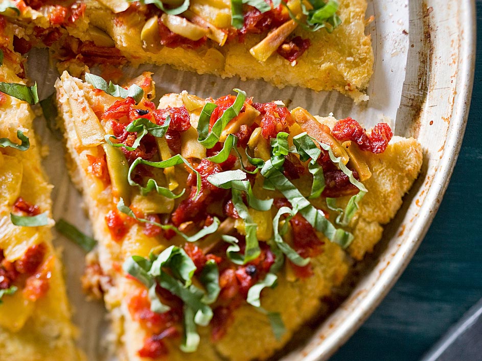 In this healthy, gluten-free cauliflower “pizza” recipe, shredded cauliflower is mixed with mozzarella and oregano to make a flourless crust that echoes the flavor of a traditional pizza pie. The Meyer lemon, olive and sun-dried tomato topping adds a sophisticated Mediterranean flavor, but feel free to try more traditional pizza toppings, such as marinara sauce and mushrooms—even pepperoni.