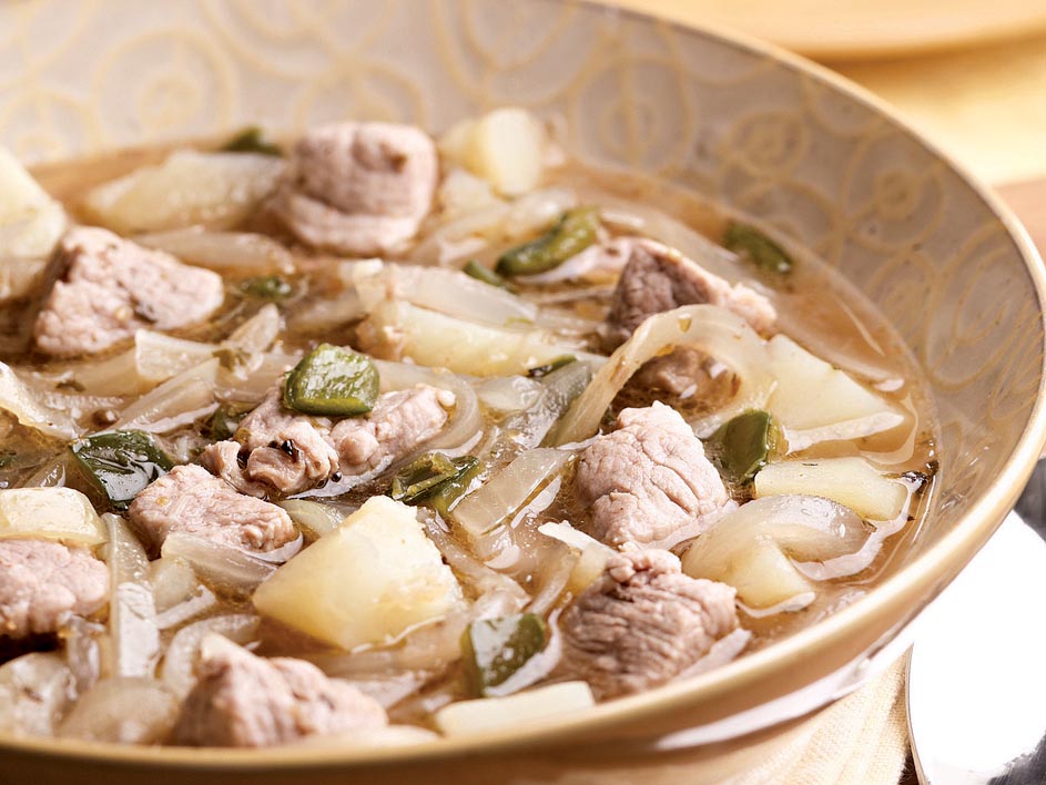 The potatoes in this quick, Tex-Mex-style pork stew are cooked until they are falling apart to add body to the stew. Poblano peppers vary in heat—if you want a stew without any heat, use 2 small green bell peppers in place of the poblanos. Serve with warm corn tortillas or cheese quesadillas.
