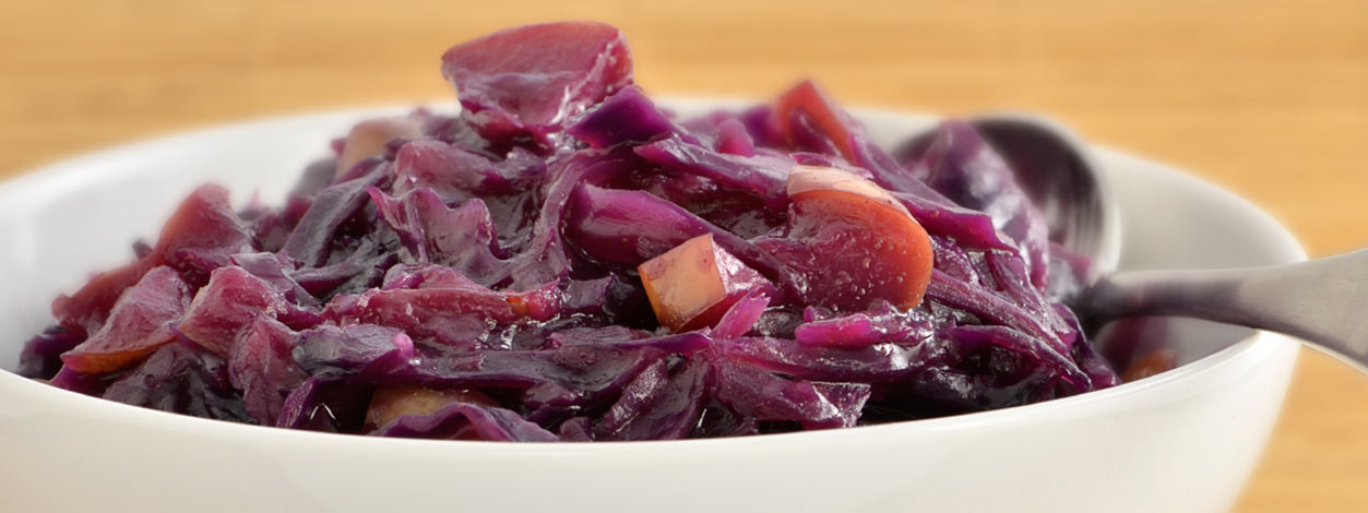 A valentine for your taste buds. Savor the sweet, mellow taste of red cabbage, slow cooked with red wine vinegar, brown sugar, onion, apple, pepper and butter.