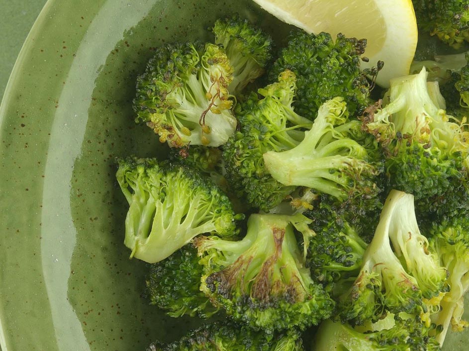 - Toss broccoli with oil, salt and pepper. Place on a large baking sheet (not air-insulated) and roast until the broccoli is tender and blackened on the bottom, 10 to 12 minutes. Serve immediately, with lemon wedges.