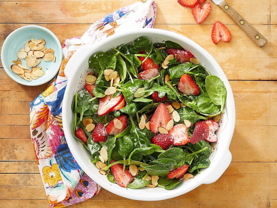 Homemade poppy seed dressing pairs beautifully with tender spinach, crunchy almonds and juicy berries for a fantastically refreshing and easy spring salad. To make it a complete meal, top with grilled chicken or shrimp.