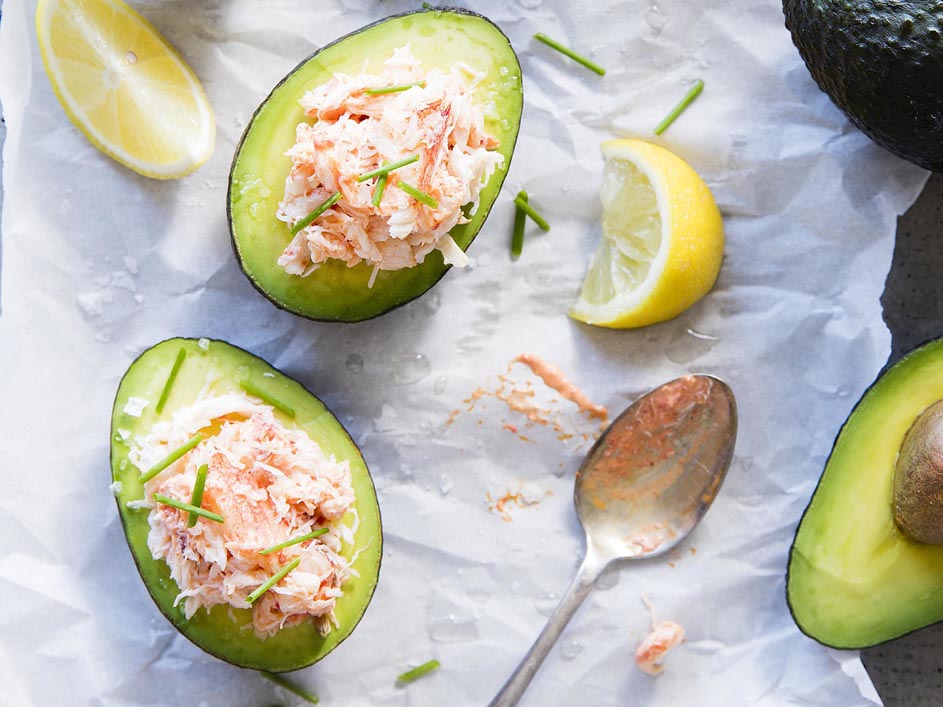 - Divide the crab salad among avocado halves. Serve with lemon wedges.